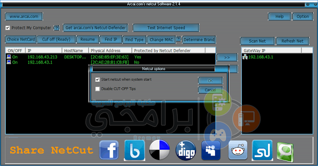 يعتبر برنامج نت كت net cut من اشهر برامج قطع وفصل الانترنت عن الاخريين المتصلين مع في نفس الشبكة ويعتبر أيضا من أقدم البرامج في هذا المجال وله شهرة عالمية واسعة بين مستخدمي شبكة الانترنت بشكل عام. برنامج نت كت 2020 netcut للكمبيوتر والموبايل يعتبر بمثابة لوحة تحكم لك علي الإنترنت و ويعتبر سبب لحل جميع مشاكل النت التي تواجهك أثناء الإستخدام لذلك قام مطوري البرنامج علي تطويره وتحديثه لاخر اصدار واحدث نسخة ممكنه لجميع. نبذة عن برنامج نت كت. تحميل برنامج نت كت netcut للكمبيوتر اخر اصدار 2020 لويندوز 7 و 8 و 10 وأخيرا xp مجانا برنامج نت كت متعدد الوظائف والخدمات يفي بجميع احتياجات مستخدمي الحواسيب الشخصية وكذلك الهواتف الذكية لقد تمكن من إيجاد حلول عملية لمشاكل.